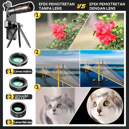 Jenis lensa: teleskop 28X + sudut lebar 0,6X + makro 20X + mata ikan 198 derajat