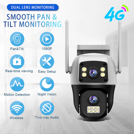 Spesifikasi CAMERACITYCCTV 4G WiFi Dual Lens 4K PTZ - Monitor Layar Ganda Deteksi Manusia Otomatis Kamera Outdoor HD, Putar 360° Tahan Cuaca Cameracity Official Store