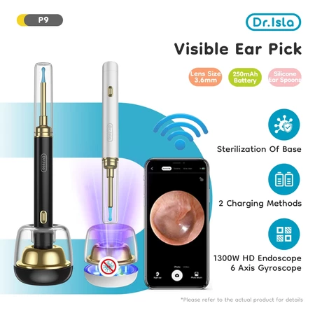 Dr.isla Pembersih Telinga Korek Kuping Kamera 1300W Piksel Dilengkapi dengan fungsi desinfeksi UV Basis pengisian daya smart Dr.Isla Official Shop