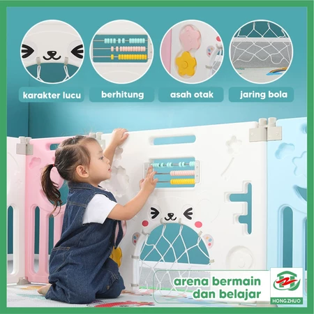 Baby fence berguna untuk tempat belajar berguling, merangkak, duduk, berdiri, juga merambat untuk bayi. Tingkat tinggi "keamanan" 63cm aman untuk bayi yang sedang tumbuh agar tetap bisa bergerak dalam pagar yang aman dan tidak dapat keluar, Ventilasi dan jarak pagar yang cukup sehingga, si kecil juga tetap bisa melihat orang tua dan dunia sekitarnya tanpa merasa tertutup. Terdapat pilihan karakter yang lucu, mainan sempoa untuk berhitung, yang berguna untuk mengasah otak dan jaring bola untuk anak bermain sehingga membuat anak betah di dalam pagar.