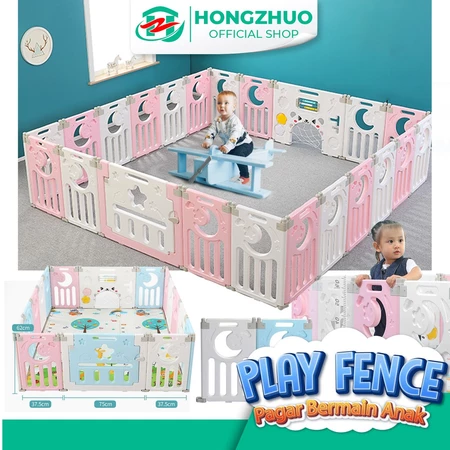 Spesifikasi Hongzhuo Pagar Anak Pagar Play Fence Bayi BabyFence Import Kokoh Bisa Dilipat Motif Bulan Bintang Hi