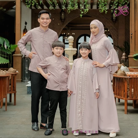 IZARABATIK - Family Set Dress Annesya Dove - Raya Collection Setelan Baju Couple Sarimbit Keluarga Muslim Lebaran
