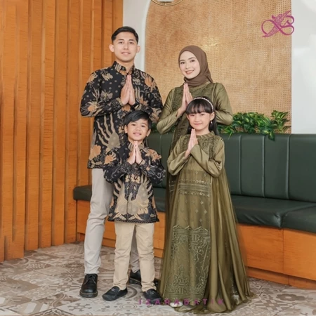 IZARABATIK - Family Set Dress Tifana Army - Raya Collection Setelan Baju Couple Sarimbit Keluarga Muslim Lebaran