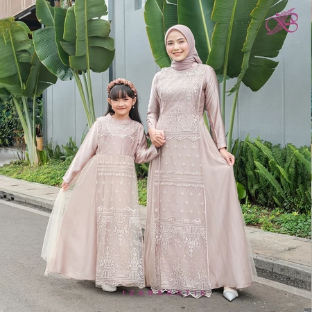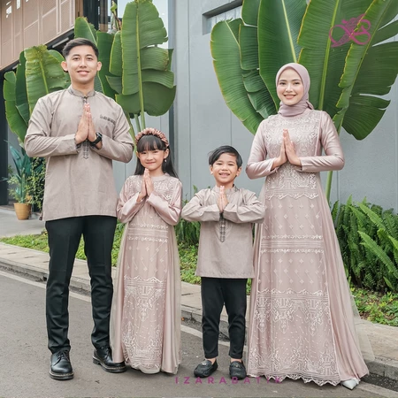 IZARABATIK - Family Set Dress Tifana Latte Raya Collection Setelan Baju Couple Sarimbit Keluarga Muslim Lebaran