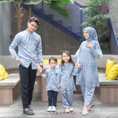 IZARABATIK - Family Set Lalita Denim - Raya Collection Setelan Baju Couple Sarimbit Keluarga Muslim Lebaran