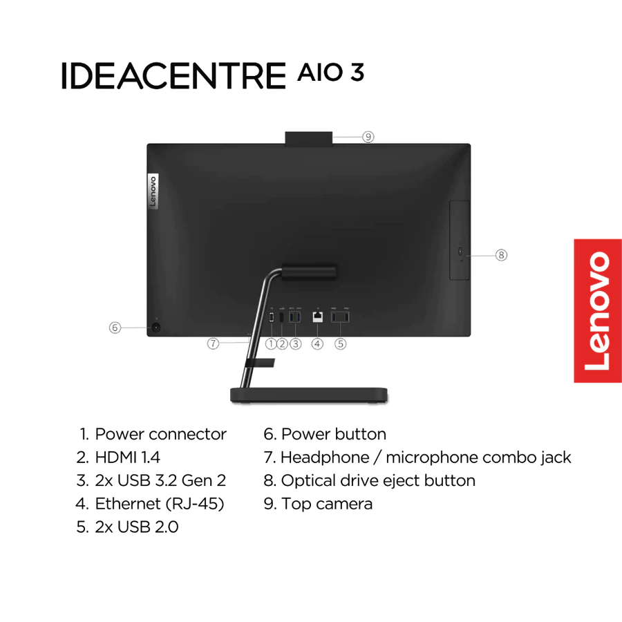 Spesifikasi Lenovo PC IdeaCentre AIO 3 24IAP7 Intel Core i3 1215U DOS 8GB 512GB SSD 23.8" FHD IPS 72% NTSC