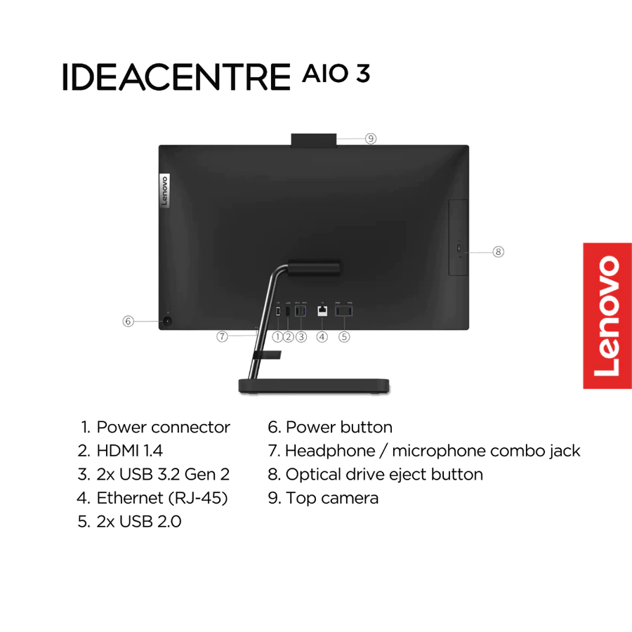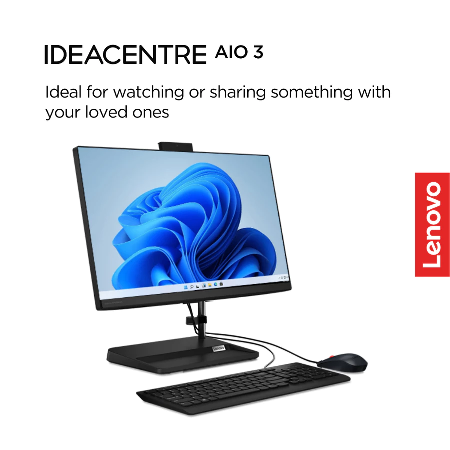 Lenovo PC AIO 3 22IAP7 (Intel Core i3 1215U, DOS (Non OS), 8GB DDR4-3200, 256GB SSD NVMe, 21.5" FHD IPS, 250nits, 72% NTSC, Antiglare, Borderless, Integrated Intel UHD Graphics, HD 720p Camera, WiFi 5, Garansi 1 Tahun Onsite) + USB Calliope Keyboard & Mouse + Packing Kayu (kecuali Instant)