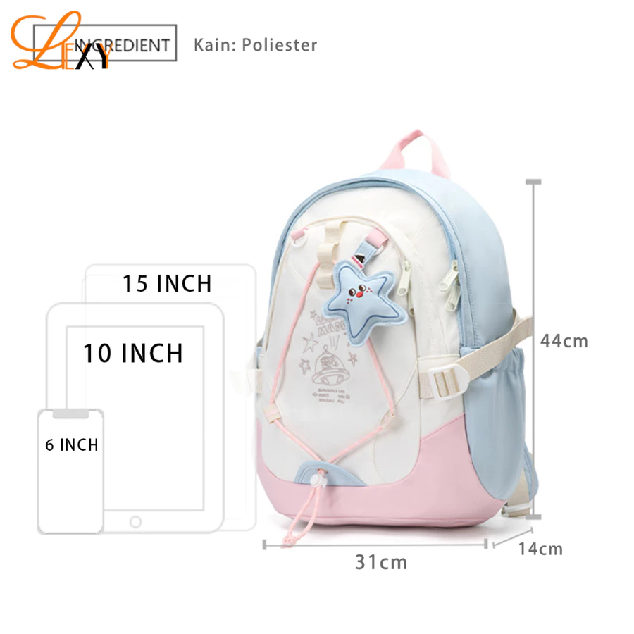 LEXY Ransel Wanita Tas Sekolah Backpack Fashion Korea Waterproof Tas Punggung SMP/SMA Premium Lexy O