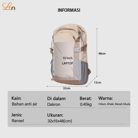 Ukuran: 48*32*15*CM, dapat menampung laptop 15 inci.