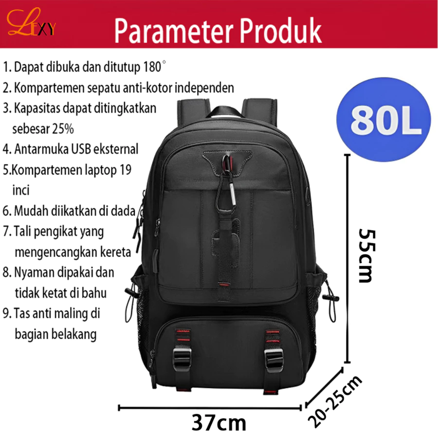 Spesifikasi LEXY Tas Ransel Perjalanan Pria 50-80L Tas Gunung Tahan Air Multifungsi Luar Ruangan Kapasitas Besar