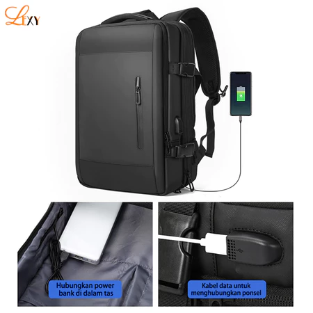 Ukuran yang diperluas: 45*31*29*CM (55L) dapat menampung laptop 16 inci. Terdapat kompartemen tersembunyi di dalamnya yang dapat menampung catu daya seluler.