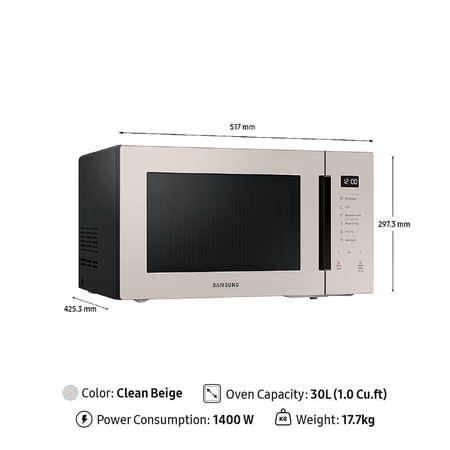 Spesifikasi MG30T Microwave Grill 30 L with Glass Touch & Simple UX, Beige Color - MG30T5068CF Samsung Official