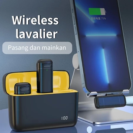 Mikrofon Lavalier Nirkabel Siborie 2.4G tanpa penundaan dengan pengisi daya tampilan baterai digital fitur pengurangan kebisingan Siborie Official Shop