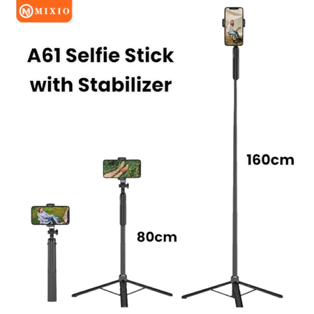 MIXIO A61 Tongsis Bluetooth / Tripod Stabilizer Gimbal Selfie Stick - 80cm/160cm Mixio Official Store