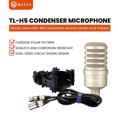 MIXIO TL-H5 PodMic Dynamic Podcasting Microphone 48V Condenser Mixio Official Store