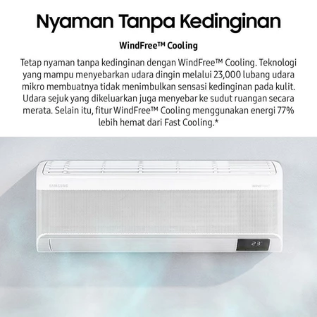 Tetap nyaman tanpa kedinginan dengan WindFree™ Cooling. Teknologi yang mampu menyebarkan udara dingin melalui 23,000 lubang udara mikro membuatnya tidak menimbulkan sensasi kedinginan pada kulit.