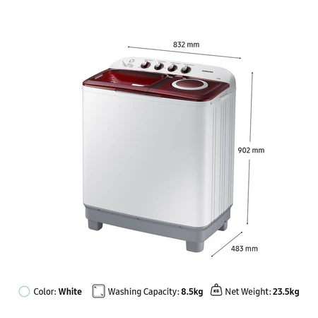 Spesifikasi Samsung Mesin Cuci 2 Tabung, 8.5 Kg - WT85H3210MG Praktis Hemat Energi Samsung Official Store