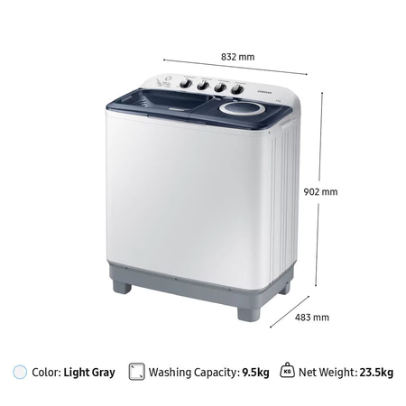 Spesifikasi SAMSUNG Mesin Cuci 2 Tabung WT95H3330MB/SE Hemat Kuat Tahan Lama Samsung Official Store