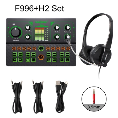 Siborie F996 Soundcard+H2 headphone full set soundcard headphone paket lengkap HIFI sound quality karaoke Siap COD Siborie Official Shop