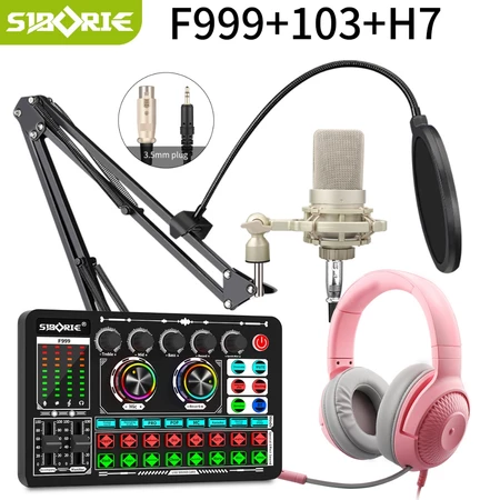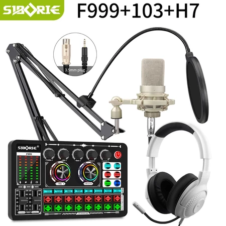 Siborie F999+103+H7 Paket Lengkap soundcard mic headphone Set Pengiriman cepat Siborie Official Store