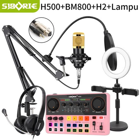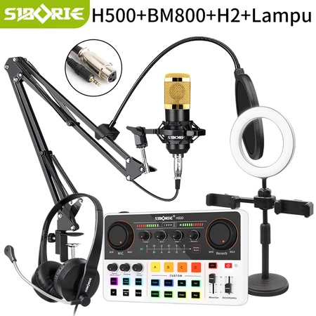 Siborie H500 Sound Card+BM800 Mic+Cantilever Support+H2 Headphone+Lampu Full Set For Streaming Media Siborie Official Store