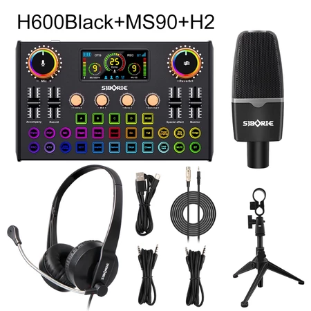 Siborie H600+MS90+H2 Paket Lengkap Live Soundcard Mic Headphone 3 in 1 Karaoke For Streaming Langsung Siborie Official Store