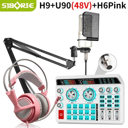 Siborie H9+U90+E10/H6/H7 paket lengkap live soundcard headset mic 3 in 1 paket lengkap HIFI sound quality karaoke Siborie Official Store