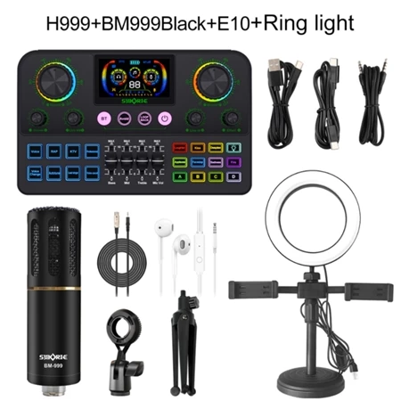 Spesifikasi Siborie H999 Soundcard+BM999 Mic+Ring Light Paket Lengkap Set Bluetooth Sound Card Mikrofon Presenting Headset Siborie Official Store