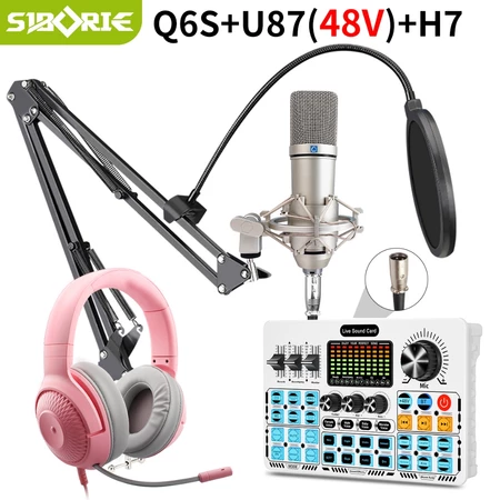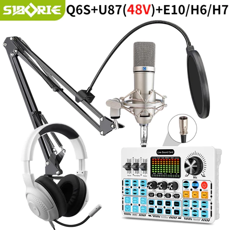 Siborie Q6S+U87(48V)+H7 paket lengkap soundcard headset mic 3 in 1 set full Peralatan Streaming Langsung Siborie Official Store