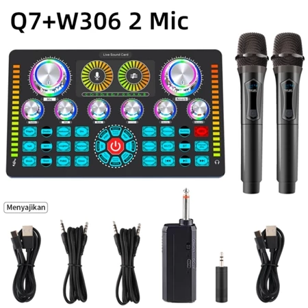 Siborie Q7 Soundcard+ W306 Two Wireless microphone Mikrofon soundcard 2 mic SET Streaming Langsung Siborie Official Shop