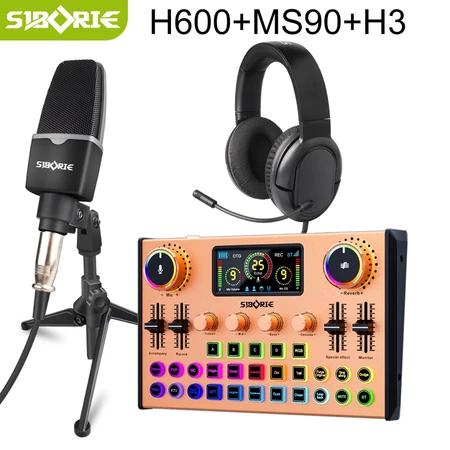 Siborie Soundcard H600+MS90 Mic+H3 Headphone Paket Lengkap Set Mixer Bluetooth Sound Card For Phone PC-Live Siborie Official Store