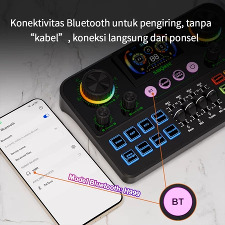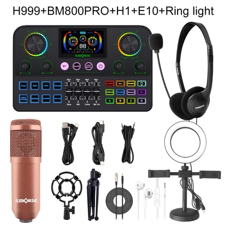 Siborie Soundcard H999+BM800PRO Mic+H1 Headphone+Ring Light Paket Lengkap Mixer Bluetooth Sound Card For Streaming Langsung Siborie Official Store