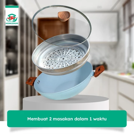 Spesifikasi Tifale Hongzhuo [2IN1] Wokpan 32CM + Glass Lid + Granite Steamer Non Stick / Alat Masak Wok dengan Panci Kukus Granite Anti Lengket Hongzhuo Official Shop