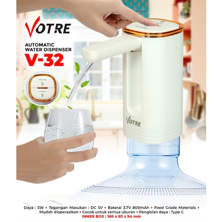 Spesifikasi Votre V32 Pompa Air Galon Electrik / Water Dispenser Auto Garansi Resmi 1 Tahun Advance Official Store