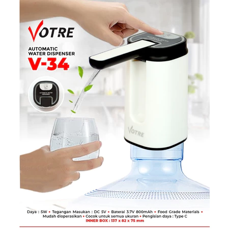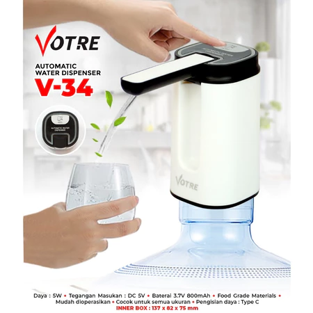 Spesifikasi Votre V34 Pompa Air Galon Electrik / Water Dispenser Auto Garansi Resmi 1 Tahun Advance Store