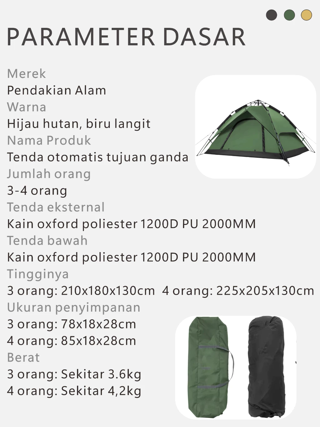 size tenda 3-4 orang : 200x200x135cm