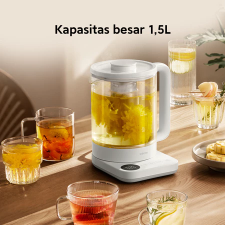 Nikmati pengalaman menyeduh minuman sehat yang praktis dan efisien dengan kettle canggih ini! Dilengkapi dengan 6 menu pilihan, termasuk merebus air, menyeduh teh, teh herbal, kopi, sup, dan menjaga suhu, kettle ini memastikan minuman Anda tetap nikmat setiap saat. Dengan kapasitas besar 1,5 liter, Anda bisa dengan mudah mengisi ulang sepanjang hari untuk kebutuhan pribadi atau berkumpul bersama keluarga dan teman.